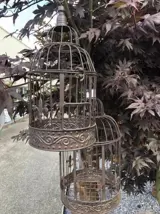 Deze set ronde metalen vogelkooitjes zien er heel fraai uit zeker qua ontwerp, super mooi om als decoratie te gebruiken. Men kan natuurlijk deze kooien ook werkelijk als vogelkooi gebruiken, men kan de kooitjes van boven open klappen en er zit een kleinere deurtje aan de zijkant in.