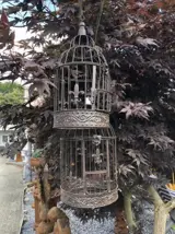 Set mooie ronde metalen bruine vogelkooitjes, heel fraai in ontwerp