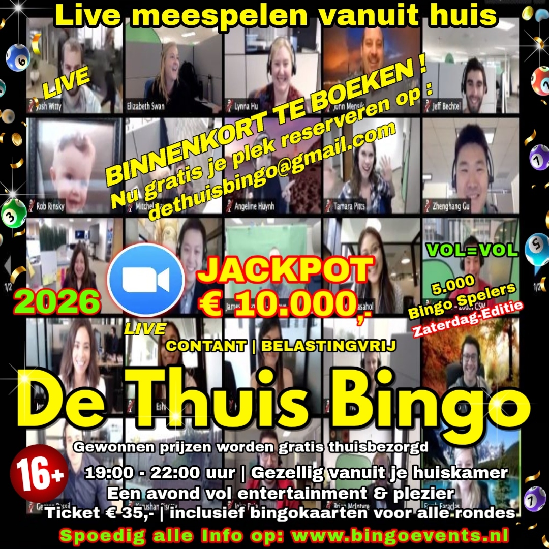 Speel bingo vanuit je eigen woonkamer! Voeten op de bank, chips erbij en vergeet je biertje niet! Maak er een gezellige avond van met familie, buren en kennissen!