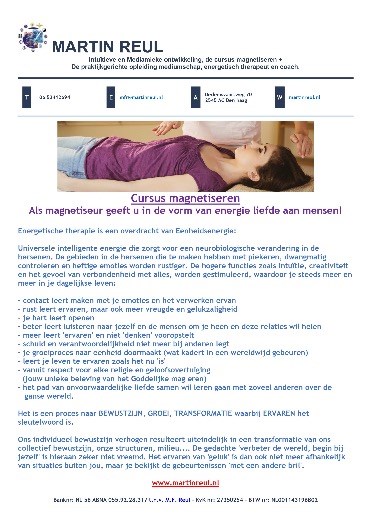 Eens leer je te kijken met gesloten ogen. Doe dan je handen open en voel.Cursus magnetiseren