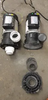 Whirlpool jacuzzi pompen.1x Model LP250 massagepomp, pomp is gereviseerd 1x Model LP250 massagepomp, rotor van de pomp moet vervangen worden1x Model JA50 circulatiepomp, rotor van de pomp moet vervangen worden