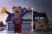 De Abraham is met twee personen simpel op te zetten. Dus opbouwen is zo gepiept. De blower sluit u aan op het stopcontact en binnen enkele minuten staat deze enorme opblaas abraham overeind. En met de meegeleverde scheerlijnen en verankermateriaal zet u de pop stevig vast.
