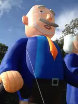 Dit model abraham is het bekendste model van Nederland. Deze grote abraham pop met wandelstok was een van de eerste Abraham poppen in Nederland en is ook nu nog steeds een veelgevraagd model. Dit bekende model heeft Opblaasfiguurshop in haar eigen frisse kleuren gestoken: helder blauw met fel oranje.