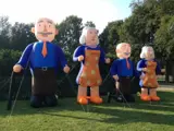 Deze opblaasbare Abraham pop is 3,5 meter hoog en ontgaat daardoor bijna niemand.
