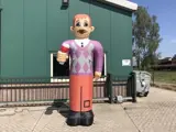 De Abraham Ouwe Kakker staat netjes recht overeind met in zijn hand een glas rode wijn. Zoals het een echte deftige kakker betaamt. Uiteraard heeft hij passende kleding aangetrokken. Deze Abraham Pop met Wijn Sr. is een keurige opblaasbare man en zal geheel in stijl in de tuin van de jarige staan. Deftig en rechtop.