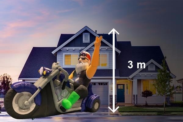 Met 2 personen is deze pop eenvoudig op te zetten. Binnen een paar minuten heb je een gigantische opblaas chopper motor pop in de tuin staan.