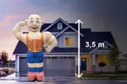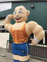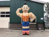 Gehuld in sportkleding heeft deze opblaasbare abraham flink staan pompen, smijten en gooien met ijzer. Deze Abraham pop mag dan ook met recht een echte krachtpatser genoemd worden, een opblaasbare abraham met flinke spierbundels!