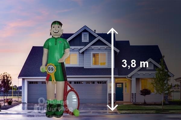 Even een balletje slaan dagelijkse kost voor de jarige? Dan past deze opblaasbare abraham pop tennisser goed bij de verrassing voor zijn verjaardag. Deze grote opblaasbare tennisspeler is maar liefst 3,8 meter hoog en kan daarom aan helemaal niemand voorbij gaan.
