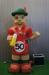 Deze compacte Abraham Pop Tirol is slechts 2,5 meter hoog en daardoor zeer geschikt om binnen te zetten, of in een kleine tuin. De pop wordt geleverd met een leeftijdsbordje naar keuze, zo is hij dus voor allerlei leeftijden en feesten inzetbaar.