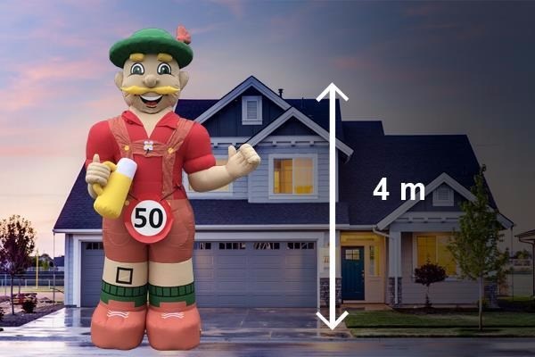Met 2 personen is deze pop eenvoudig op te zetten. Binnen een paar minuten heb je een grote Tiroler in de tuin staan.