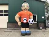 De oranje Abraham Pop Voetballer is 3,5 meter hoog en heeft een grote voetbal onder zijn arm. De pop valt van veraf op en iedereen die langstrijdt zal weten dat de jarige van voetbal houdt.