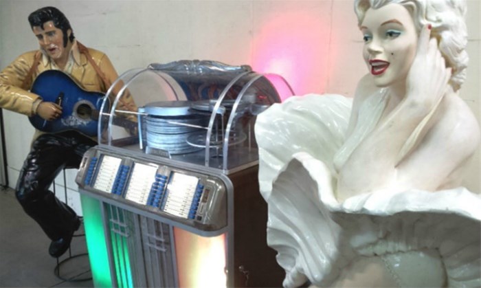 Levensgrote beelden , filmsterren en gamefiguren, popcornmachine, jukebox,