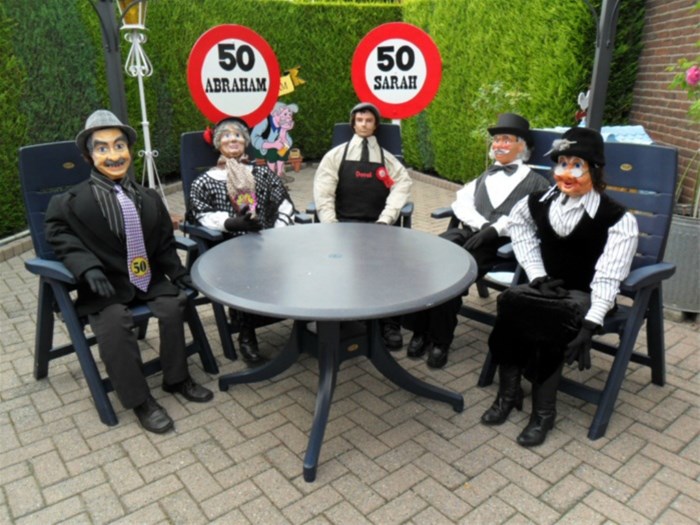 Abraham of Sarah pop levensgroot of 3 delige set niet voor deze huur prijs te maken de grootste keuze in de regio Limburg, ook het adres voor feestartikelen en feestversieringen, bel 06-50916662 maak een afspraak en kom vrijblijvend langs en bezichtig ons assortiment.