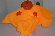 Pompoen met oranje kleed.