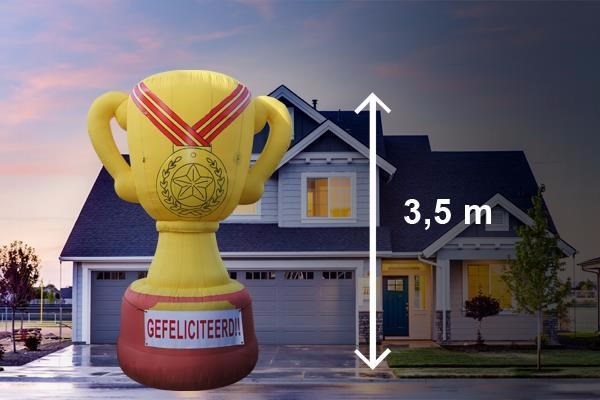 Iets gewonnen? Kampioen geworden? Laat het iedereen weten met deze grote opblaasbare gouden beker. Met deze enorme beker gaat het feest aan niemand voorbij!
