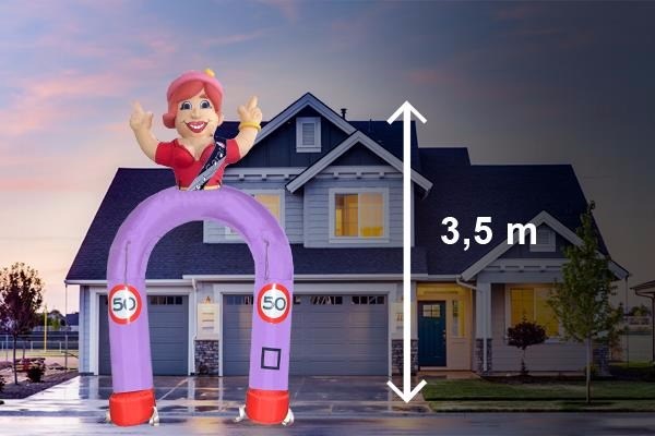 De opblaasbare feestboog kun je bijvoorbeeld voor de deur of in de tuin van de jarige zetten. Zo wordt jouw jarige moeder, zus, buurvrouw of vriendin vrolijk binnengehaald op zijn verjaardag.