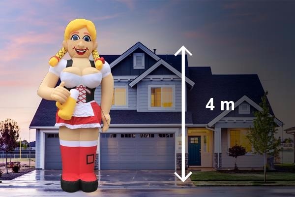 Met 2 personen is deze pop eenvoudig op te zetten. Binnen een paar minuten heb je een opblaas Tiroler Sarah in de tuin staan