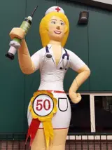 Deze mega grote opblaasbare Sarah verpleegster pop is maar liefst 4 meter hoog en torent daarmee overal bovenuit. De verjaardag van de jarige zal dan ook zeker niet ongemerkt voorbijgaan!