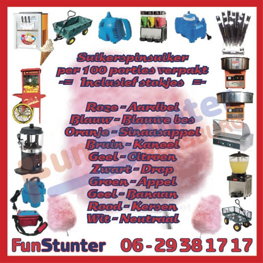 Goed gekleurd en verpakt. Per verpakking goed voor circa 100 suikerspinnen