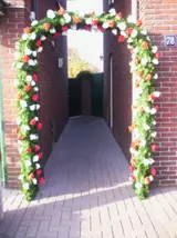 nieuw in de verhuur deze prachtig mooie groene huwelijksboog incl roosjes