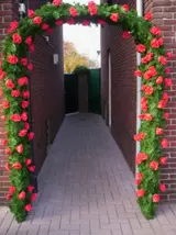 100 witte 100 rode of gemengde rozen boog is van kunstgroen niet van echt te onderscheiden te vervoeren in 3 delen de rozen zitten op een knip en zijn makelijk te bevestigen.