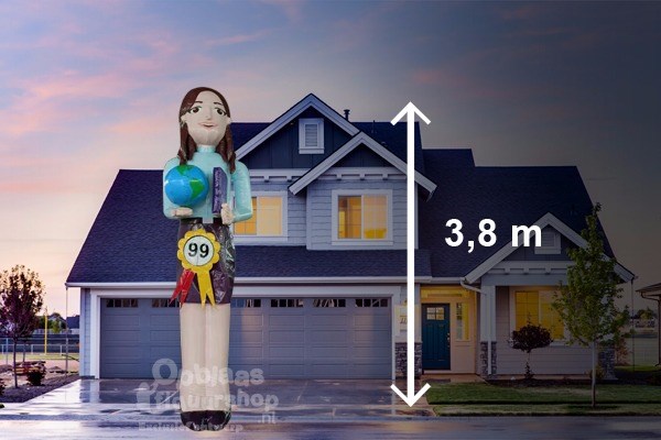 Deze splinternieuwe opblaasbare Sarah is een uniek ontwerp van Opblaasfiguurshop. Ontworpen en geproduceerd in eigen beheer waardoor de pop zich onderscheidt door de vele uitgewerkte details en kwalitatief heldere prints. Deze Sarah pop Lerares, Docente is uniek in haar soort. Momenteel vind je nergens anders een Sarah pop die het beroep van lerares of docente uitoefent. Met de ontwikkeling van onze eigen poppen willen we jou zo veel mogelijk keus bieden waardoor het kiezen van een passende pop voor de jarige steeds makkelijker wordt.