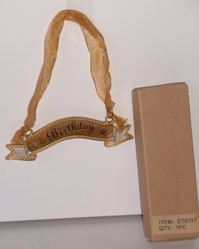 Leuk plaatje van metaal met kunststof voorzien van goudkleurig ophanglintje.