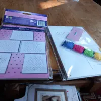 Weven - weefset - inclusief weefraam en garen - Met deze uitgebreide weefset van maak je de mooiste geweven creaties. Of je nu een kleurrijke onderzetter of een decoratief wandtapijt wilt maken, met dit duurzame weefraam en de vijf kleuren katoengaren kun je direct aan de slag. Leer stap voor stap de techniek van het weven en creëer iets bijzonders! - compleet fot 1 + 2 , z.g.a.n. 6,50 - foto 3 , groot, 12,75