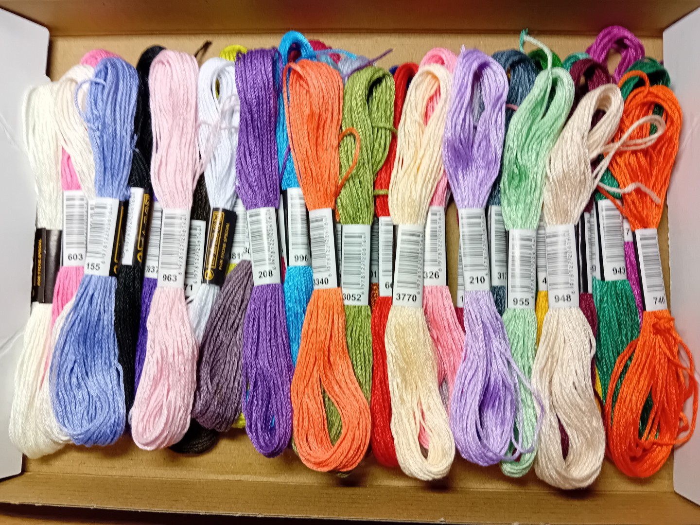 36 verschillende strengen borduurgaren. (Splijtgaren)