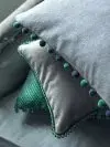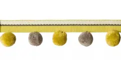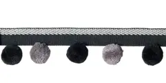 Een mooie leuke afwerkband met bolletjes voor afwerking van gordijnen, kussens, wieg en lampenkap.