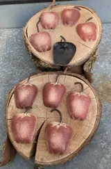 Set van 10 rood/beige gevlamde appeltjes met steeltje.
