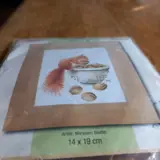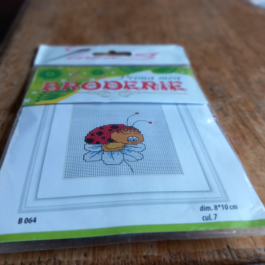 borduren:- lanarte: poes, 14 x 14 , prijs 3,50- lieveheersbeestje, 8 x 10, prijs 2,75- Marjilein Bastin , stukje klaar, 3,50
