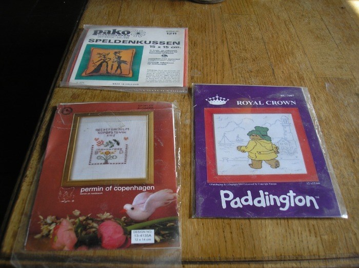 Borduurpakket - nieuw- 5,- per stuk- nieuw, compleet in de verpakking- paddington - 12 x 12 , - speldenkussen, 15 x 15 , - permin, 12 x 14 - 3 voor 12,50