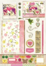 De kaarten zitten in een stansblok met uitdrukvellen. Er hoeft dus niet geknipt te worden. En met 1 stansblok kun je 12 verschillende kaarten maken.