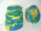 Exclusieve handgemaakte cadeau/opbergdoosjes van Mulberry papier ovale dozen, groen Geel blad druif decor.