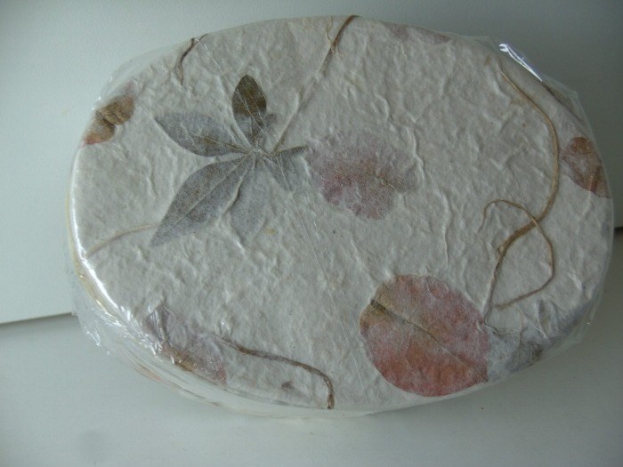 Exclusieve handgemaakte cadeau/opbergdoosjes van Mulberry papier ovaal wit met bloem/ bladeren.