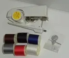 - 7 spoeltjes met elk 100 meter verschillende kleuren garen.