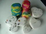 1) Rond in diverse kleuren (zie foto). € 2,50 per set.
