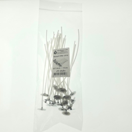 Waxpit Waxpit HN-LX18 Ø7-8cm ~13cm lang is een katoenen lont gewaxt en voorzien van een voetje