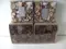 2 doosjes met natuurlijke materialen gedeeltelijk zilverkleurig formaat 12,5x12,5x 6,5 cm