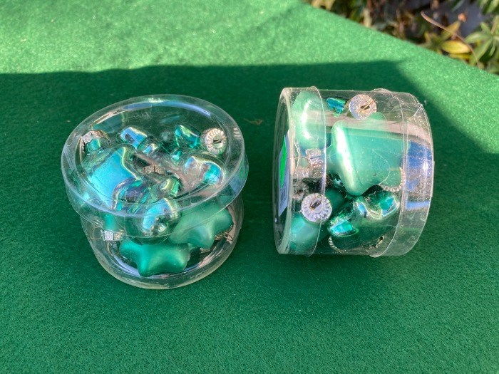 KOKER MET KLEINE KERSTBALLEN IN DE VORM VAN STERREN GROEN NIEUW