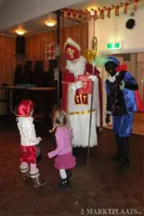 Sinterklaas en zijn Pieten komen binnen en Sinterklaas neemt plaats op een gereedstaande (hoge) stoel. Sinterklaas en zijn Pieten praten wat met de aanwezige kinderen en uiteraard is er tijd voor zang en dans. De kinderen mogen één voor één bij Sinterklaas komen om een cadeautje in ontvangs te nemen(cadeautje niet inbegrepen). Sinterklaas heeft natuurlijk een goed woordje voor elk kind in zijn grote boek staan. Wanneer alle kinderen een cadeautje hebben ontvangen maken zij dit tegelijkertijd open als Sinterklaas en zijn 2 pieten zijn vertrokken.