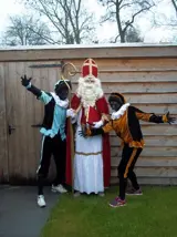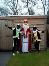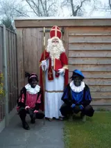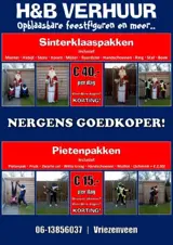 Piet per dag 15 euro bestaande uit jas broek pet met veer pruik witte kraag zwarte col maillot handschoenen ( evt jute zak en oorbellen)