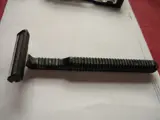 Het is een ouder model maar heb er nog mesjes van: wie heeft nog zoiets liggen en wil het wegdoen: betaal er nog een fatsoenlijke prijs voor, de mesjes heb ik eigenlijk niet nodig maar zijn ook welkom, het gaat enkel om het apparaatje met “slede” waar de mesjes worden opgeschoven: zie foto’s.