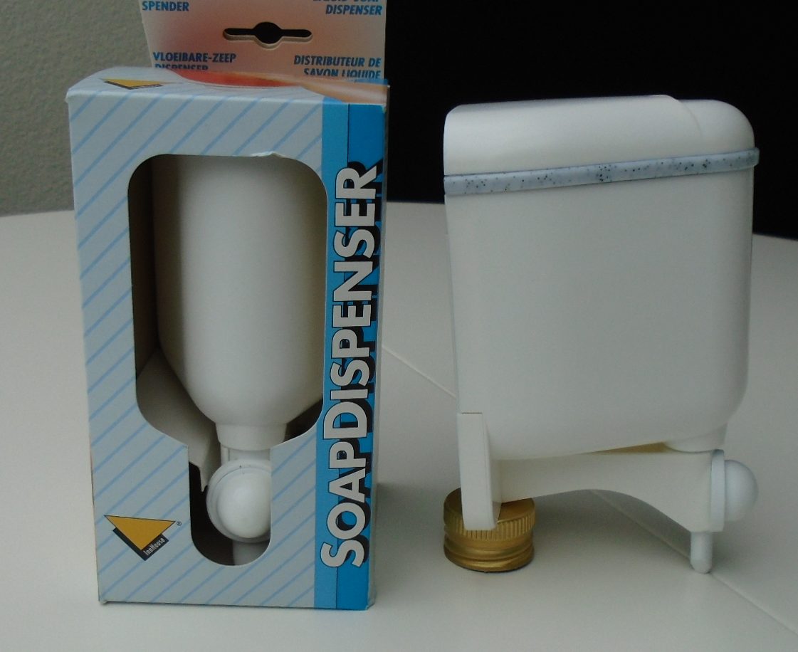 Zeepdispenser welke geschikt is voor wandmontage (incl. bevestigingsmaterialen schroeven of plakken).