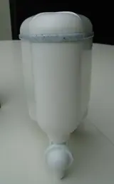 De dispenser is eenvoudig navulbaar en door de drukknop hygiënisch in gebruik.