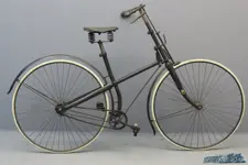 George Townsend 1889ca “The Ecoissais” frame # 644 The safety bicycle was the successor to the legendary high bicycle: the penny farthing. This early model of a cross-frame safety bicycle was made around 1889. It has 30 inch wheels and solid rubber tyres. The bicycle still has all kinds of features that are reminiscent of the high bicycle, such as the direct spokes, the simple pedals and the steering. The bicycle, with frame number 644, was made by George Townsend in Redditch (UK), in the same f ...