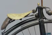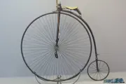 This Ordinary has a tubular steel frame and 52-inch (132 cm) front wheel with spoon brake. The pedals have rubber stud inserts and the bearings are adjustable. The saddle is fixed on a leaf spring and accessories include a bell and whip holder plus whip. At the time Singer was one of the leading British bicycle manufacturers, known for their precisely crafted frames and innovative components. This quality machine once belonges to the collection of the prestigious Musée du Cycle in Falmignoul.