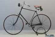 As far as we know, this Waltham Cross Safety Racer is the only surviving example. It was sold by us years ago (then painted green) and has since then been thoroughly restored to its original specifications. The bicycle has a new, period-correct leather saddle cover. The saddle springs and stays are original. It also has an original block chain and the original double/hollow rims, which were considered high quality at the time. A number of parts are nickel-plated and the period correct handlebars have horn grips. Original pedals and adjustable cranks are fitted. Braking is effected by a spoon brake on the front wheel and rubber tyres are fitted. Accessories include Miller oil lamp, bicycle bell and leather tool bag.