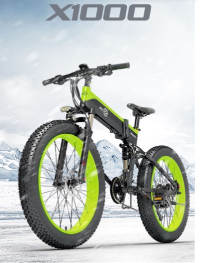 BEZIOR X1000 Folding Electric Bike Bicycle Panasonic 48V 12.8Ah Battery 1000W Motor 26 inch Fat Tire Aluminum Alloy Frame Shimano 27-speed Shift Max Speed 40km/h IP54 100KM Power-assisted mileage Range LCD Display IP54 waterproof - Black Green